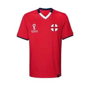 Show your support for England's soccer team with this officially licensed men's FIFA World Cup classic secondary short sleeve jersey. The jersey comes in a vibrant red color and features the team's logo on the front. Made of high-quality materials, this jersey is perfect for any soccer fan who wants to show their love for England during the World Cup event.