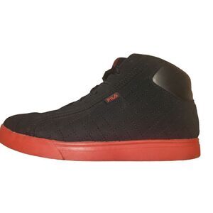 These Fila men's Vulc 13 black low-top sneakers make a bold statement. Never abad look with these clean looking shoes.. Fila began in 1911, in the smallalpine town of Biella, Italy, a place renowned for manufacturing the world'sfinest textiles, and weaving fabrics with impeccable quality, true innovationand extraordinary beauty. Born of the city and its traditions, Fila isinexorably derived from Biella's dedication to artistry, luxury and elegance.This is our birthright, it's in our soul, and it defines our future. Wecontinue to enrich the athletic experience by improving comfort andperformance with Italian design, quality craftsmanship and refined materials.There is no feeling quite as luxurious as that of playing in Fila, and that isthe reason for our existence. We create what is desired, not what isnecessary. Not just enough, but more than you need. This is Fila.