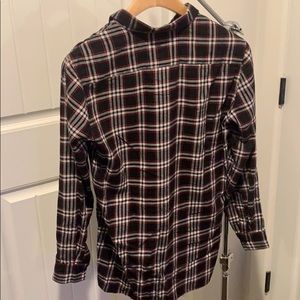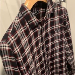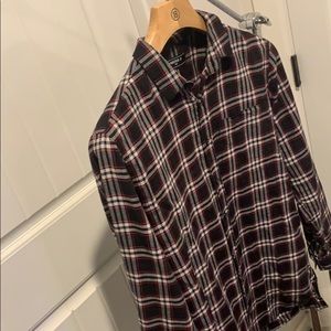 Contemporary style - a little longer on bottom. Made to be worn untucked.
