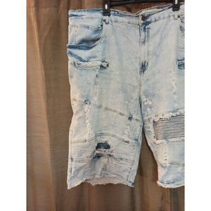 Men's FWRD Denim Moto Distressed Light Wash Jean Shorts Size 48