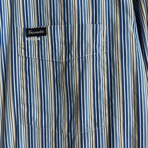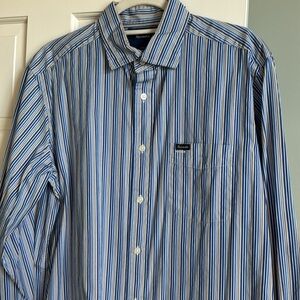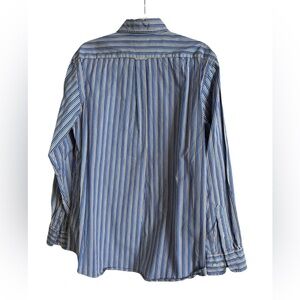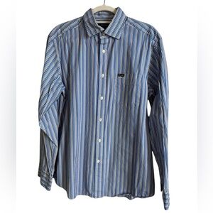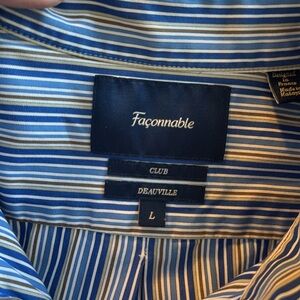 Very good condition. White with sades of blue and tan stripes. Front pocket . 100% cotton . Designed in France made in Malaysia