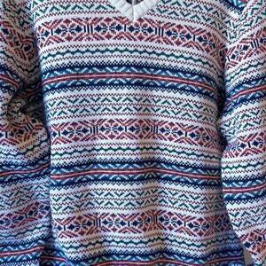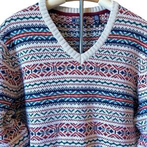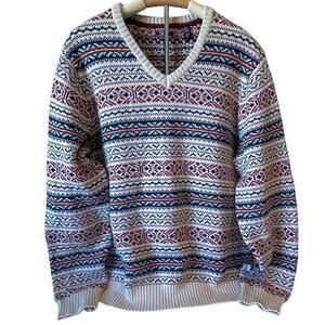 Men's Fair Isle Cotton V-neck Long Sleeve Sweater Ribbed Hem Size XL
