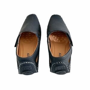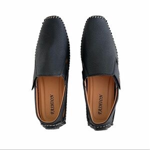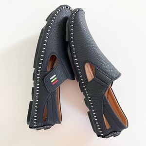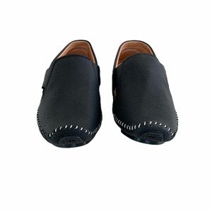 Fashion Velcro Non-Slip Pebbled Style Shoes. New without tags, never worn. Black color with red, green and white stitched stripes on sides. Men’s size 8.5 US, Euro size 42. Padded insoles and non-slip grip bottoms. Velcro side for easy on and off. Open slits on sides. Pebbled style and white stitching. Left shoe has a slight storage mark on top and is slightly lifted in front, may not be as noticeable when worn. See photos.