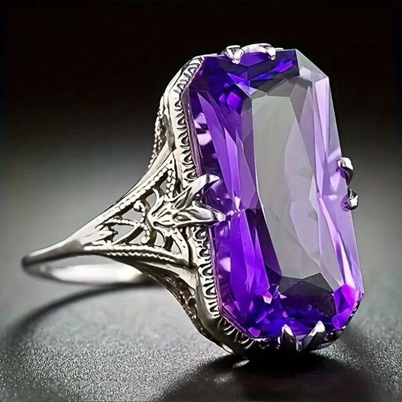 Men's Fashionable Purple Square Zirconia Ring - Perfect for Casual Wear Size 10