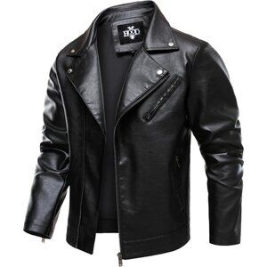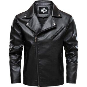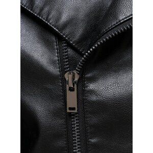Mens Faux Leather Jacket HOOD CREW Motorcycle Biker Coat Zip Up Lapel Cool