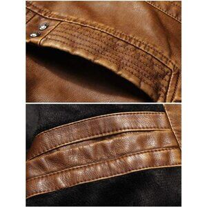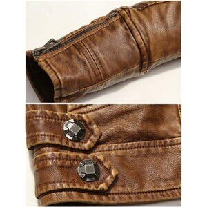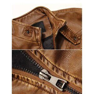 Men's Faux Leather Jacket Vintage Stand Collar Motorcycle PU Leather