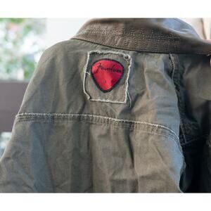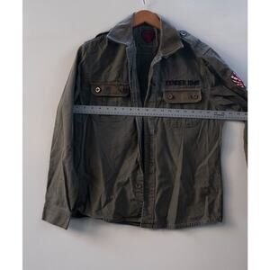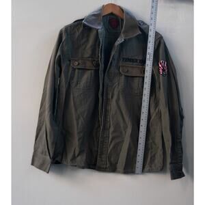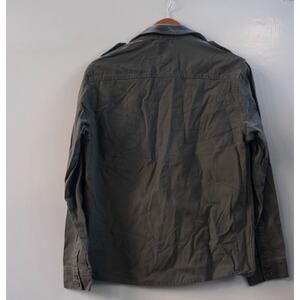 Men's Fender Olive Green Military Style Shirt Leather Collar & Pocket Flaps Sz S