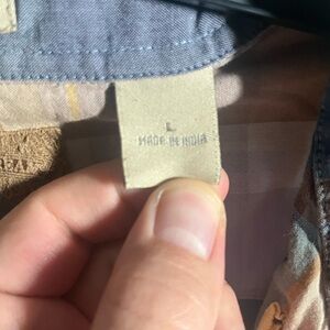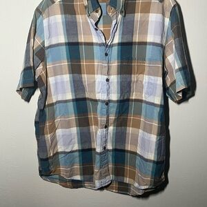 Men's Field & Stream Plaid Short Sleeve Shirt - Blue and Brown Size L
