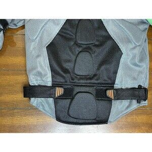 This men's Fieldsheer motorcycle riding jacket is perfect for those who love race and track style. With a short length and button and zipper closure, this jacket is made of durable mesh material and lined with polyester for added comfort. The jacket is available in size S and features a black and gray color scheme with a visible Fieldsheer logo.