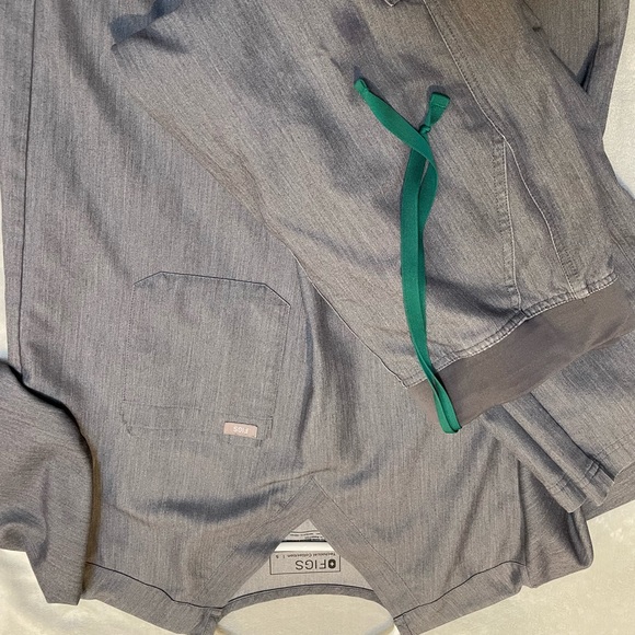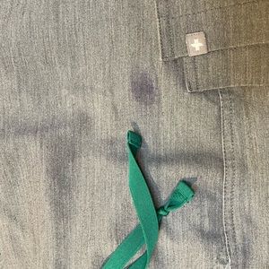 Graphite men’s figs size small//small short. Small stain near the pocket pictured, price reflects