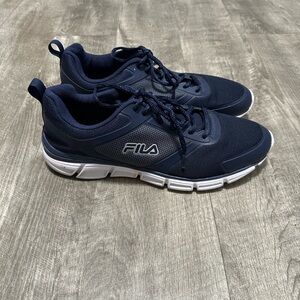 Men’s Fila Shoes 11 Memory Foam Tie Lace Closure Leather Rubber Sole Navy Blue