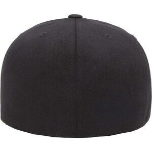 Mens Fitted Baseball Cap Flexfit High Profile Structured Hat Flat Brim Black
