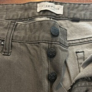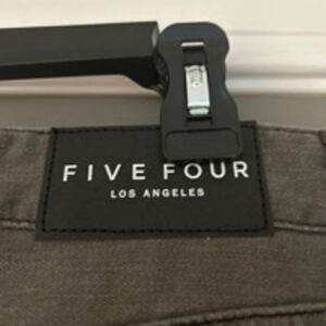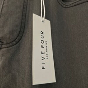 These are new with tags Five Four Los Angeles men's jeans in a gray wash. They are size 32 straight fit and have a heavy wash. The jeans are made of cotton, polyester, and spandex. The jeans have a black leather patch on the back with the Five Four logo. The jeans are in excellent condition and have no visible imperfections.