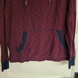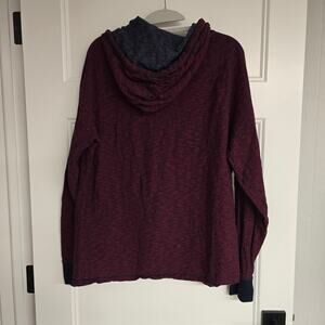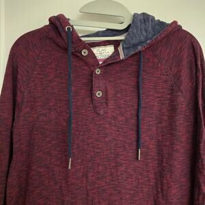 Excellent condition, men's Flag & Anthem heathered maroon, lightweight, pullover/hoodie. This top has a front pocket and 3 button on the front. This material does stretch some.