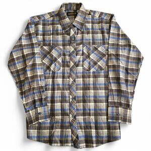 Men's Flannel Shirt L Plaid Button Down LS Brown Blue Western Workwear Outdoor