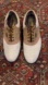 Gently loved, great condition, see photos. Men’s FootJoy DryJoy AquaFlex Leather Saddle Oxford Golf Shoes, 10.5M. Classic white with a tan saddle overlay and lace-up closure. They are spikeless and designed for traction and stability on the golf course. #golf #spikeless #leather