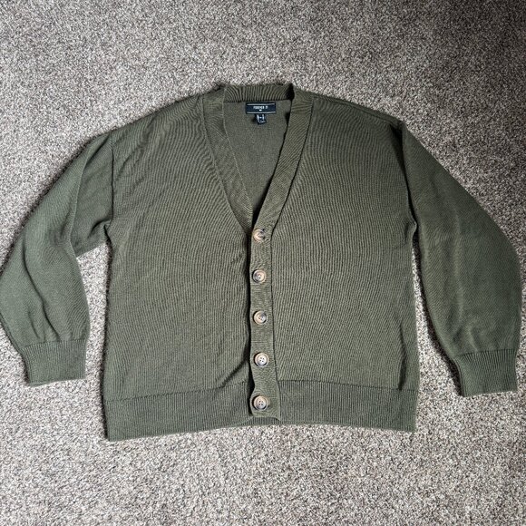 Men's Forever 21 V-Neck Relaxed Fit Cardigan, Size XL, Olive Green