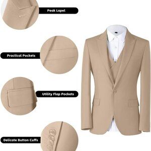 Men's Formal 3-Piece Champagne Suit Set: Slim Fit, Versatile for Weddings & More