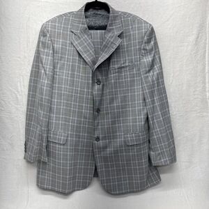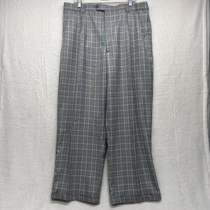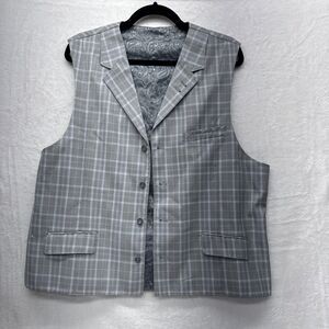 Men's Formal Gray/Grey Plaid 3 Piece Suit Suspender Buttons Cuff Hem 40R 34W