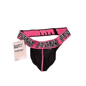 Get ready to turn heads with this Fort Troff pink jockstrap! This brand new jockstrap features a bold logo band and is perfect for those who are kink-ready and proud. The vibrant pink color is sure to make a statement, whether you're hitting the gym or exploring your playful side.