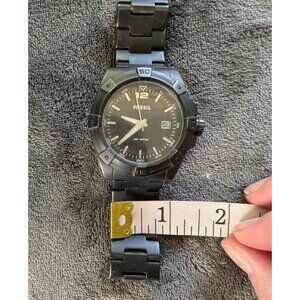Mens Fossil AM 4234 Black Stainless Steel Water Resistant Watch Needs Battery