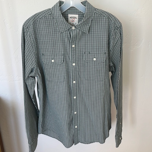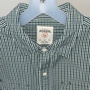 Men’s medium Fossil button-down - green and navy plaid
