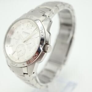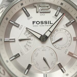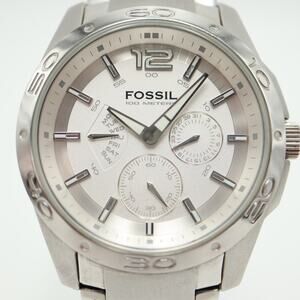 Mens Fossil Multifunction Watch 40mm Silver Tone Day Date Stainless Steel BQ9327