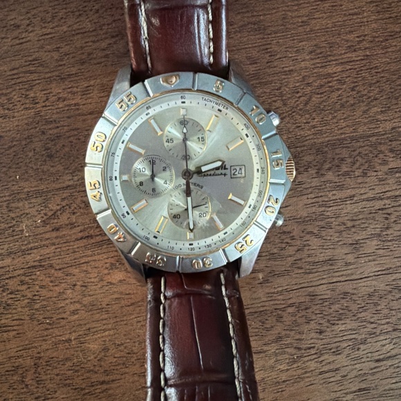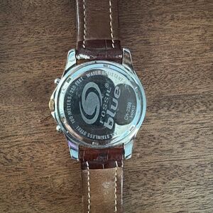 Sleek men’s fossil watch with brown leather band. Used but in great condition