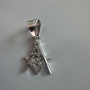Men's Free Mason Stainless Steel Freemason Symbol Masonic Pendant Chain Silver