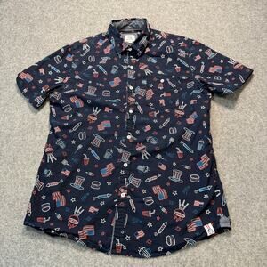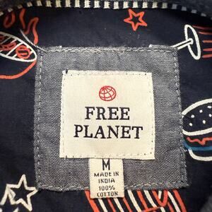 Men's Free Planet Patriotic American Flag 4th of July Short Sleeve Shirt Size M