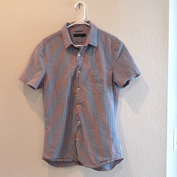 Men’s size M button shirt. Short sleeve. Purchased at Nordstrom’s and worn once. Shirt is textured and is awesomely vibrant! From a smoke free, pet free home and there are no rips, tears or stains.