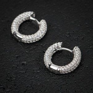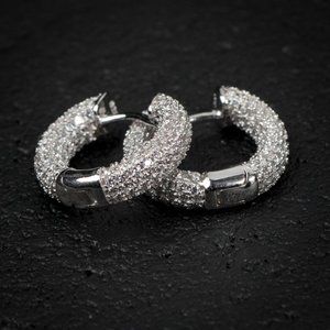 Our beautiful huggie hoop earrings come pave set with dozens of shimmering clear cubic zirconias