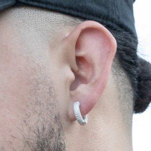 Mens Fully Iced Sterling Silver Honey Comb Huggies