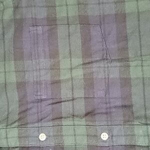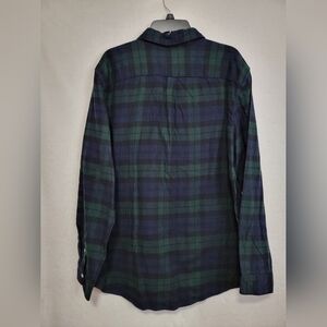 GAP shirt with a plaid pattern. Features dark green and blue hues. Standard fit design.