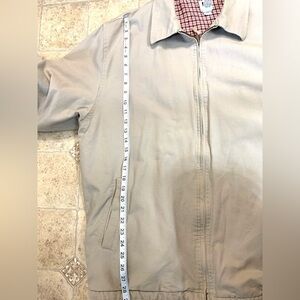 Measurements in photos. Lined. Great for fall weather. Very good condition. Smoke-free home. My husband just hasn’t worn it for a while, so it needs to go.No holes/tears that I’m aware of.