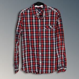 Men's Gap Red and Blue Plaid Button-Down Shirt - L