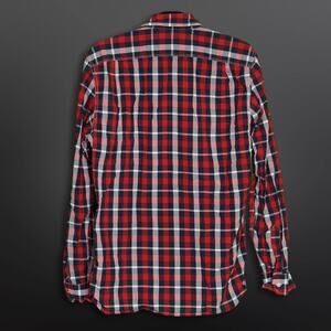 Featuring a timeless red and blue pattern, this shirt is perfect for a relaxed yet put-together look.