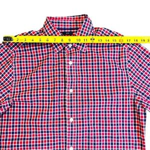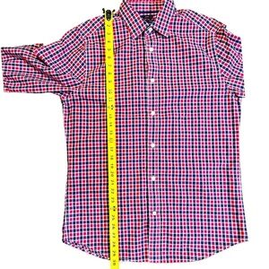 This men’s Gap slim fit red and blue plaid shirt is a great staple for your closet. It’s bright and energetic. Just what you need to liven up your outfit.