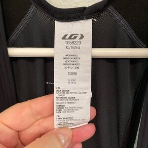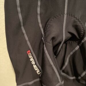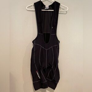 Men’s Garneau black padded bicycle suspender shorts. Size XL