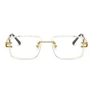 Men's Gem Cut Gold Frame Clear Lens Rectangular Luxury Rimless Hip Hop Glasses