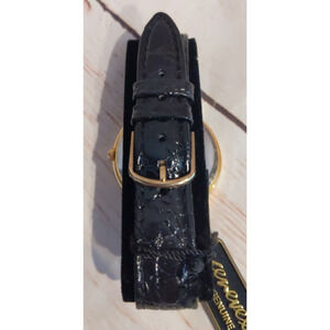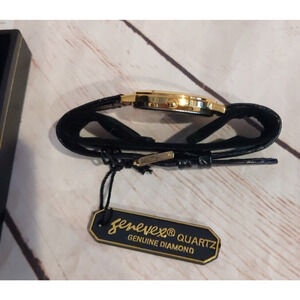 Mens Genevex Diamond Quartz Black Watch Leather Band