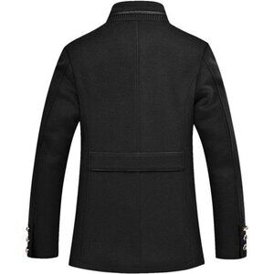 Men's Gentle Band Collar Single Breasted Wool Blend Pea Coat 10black