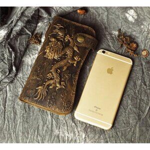 Structure: This is real leather organizer checkbook wallet has a few card slots, cash holder as well as a zipper holder. It come with a detachable iron chain, which can be snap attached to your pants when you put the wallet in pocket, thus avoid thieft. It has the perfect size for iPhone 6 plus.
