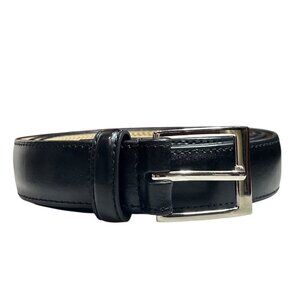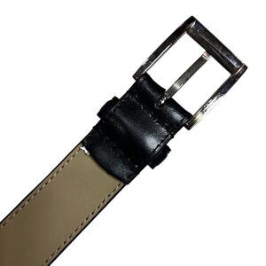 Elevate your wardrobe with a timeless accessory, this black genuine leather dress belt, crafted to complement your classic and modern attire. With a size 44 fit, it boasts a solid pattern and a sleek 1-1/8" width, ideal for threading through your favorite trousers or slacks. The belt is designed with a distinguished silver-tone buckle, adding a touch of sophistication to the overall look. Manufactured with care, this belt features a durable leather material paired with metal hardware that ensures longevity and a smooth finish. Perfect for the fashion-conscious individual, its design embodies a perfect blend of functionality and style, making it a versatile addition to any ensemble. Whether it's for a day at the office or a night out, this belt is sure to enhance your outfit with a classic touch.