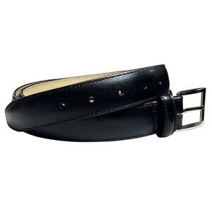 Men's Genuine Leather Dress Belt Black Size 44 Silver Tone Buckle 1-1/8" W