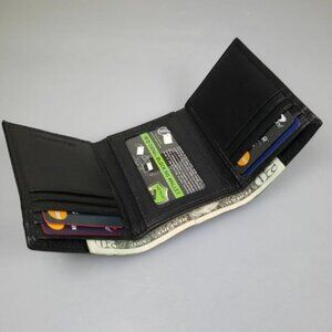 Men's Genuine Leather RFID Blocking Trifold Black Wallet NEW in Box