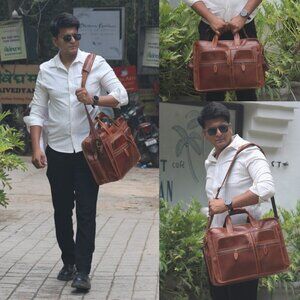 ->GENUINE LEATHER: This Weekender Bag is Made from Genuine Cowhide Leather. The thread used for stitching is strong and also enhances the overall look of the Weekender Bag.