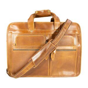 Men's Genuine Leather Vintage Weekender Bag, Briefcase Bag Satchel, Tan