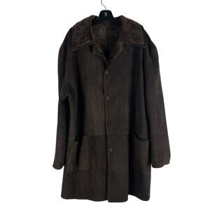 Men's Genuine Suede Shearling Long Coat Jacket Custom Made Brown Size 3XL