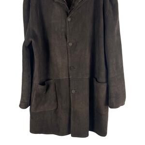 Men's Genuine Suede Shearling Long Coat Jacket Custom Made Brown